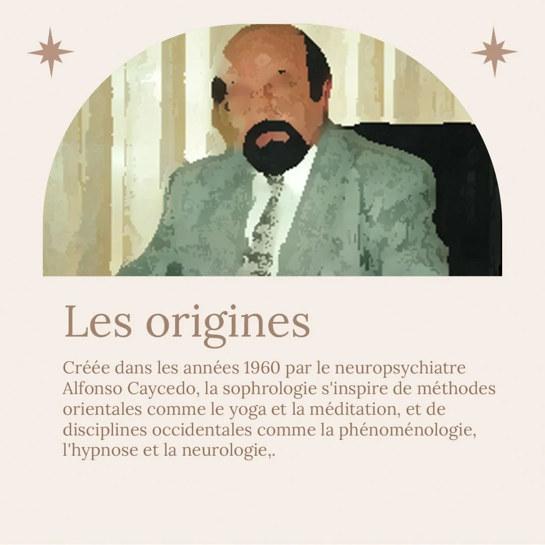 Pour comprendre la sophrologie, il faut connaître le parcours de son créateur, Alfonso Caycedo. Ce neuropsychiatre, né en 1932 à Bogota dans une famille espagnole, a développé cette méthode en réponse aux traitements psychiatriques lourds de l'époque, comme les électrochocs et les comas insuliniques.